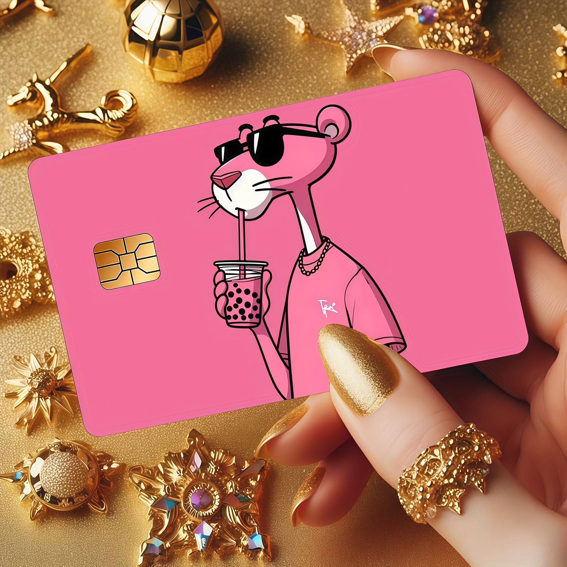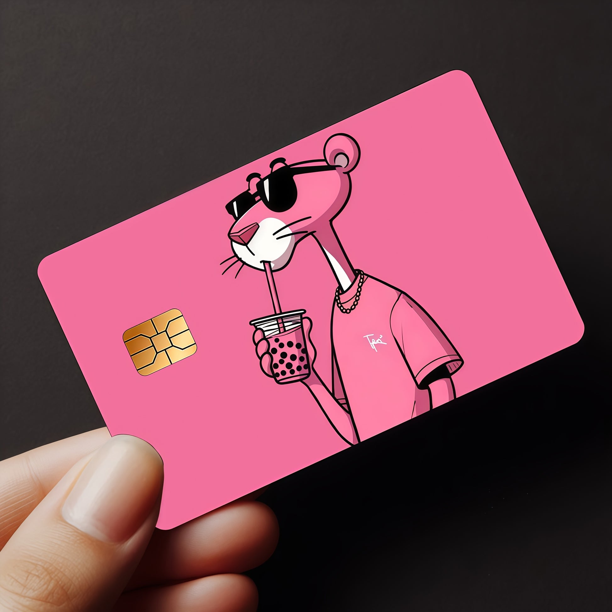 Комбинация от мода и култова анимация ! Този стилен стикер с розовата пантера ще направи банковата ти карта истинско модно изявление.