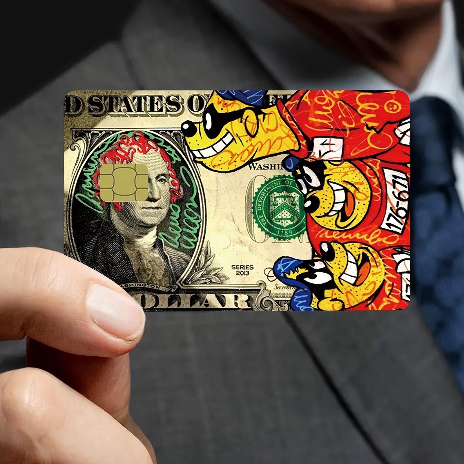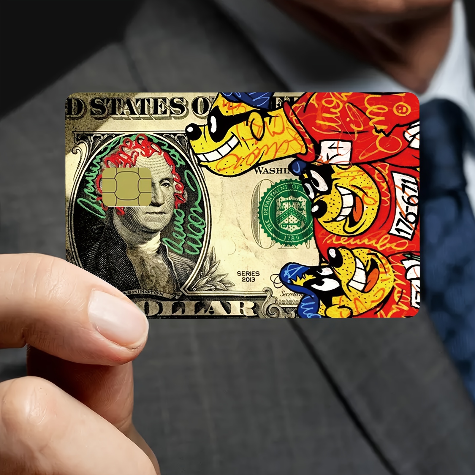 Иконичният образ на долар оживява с весели анимирани герои в ярки цветове, които придават твоя уникален и забавен стил на картата!