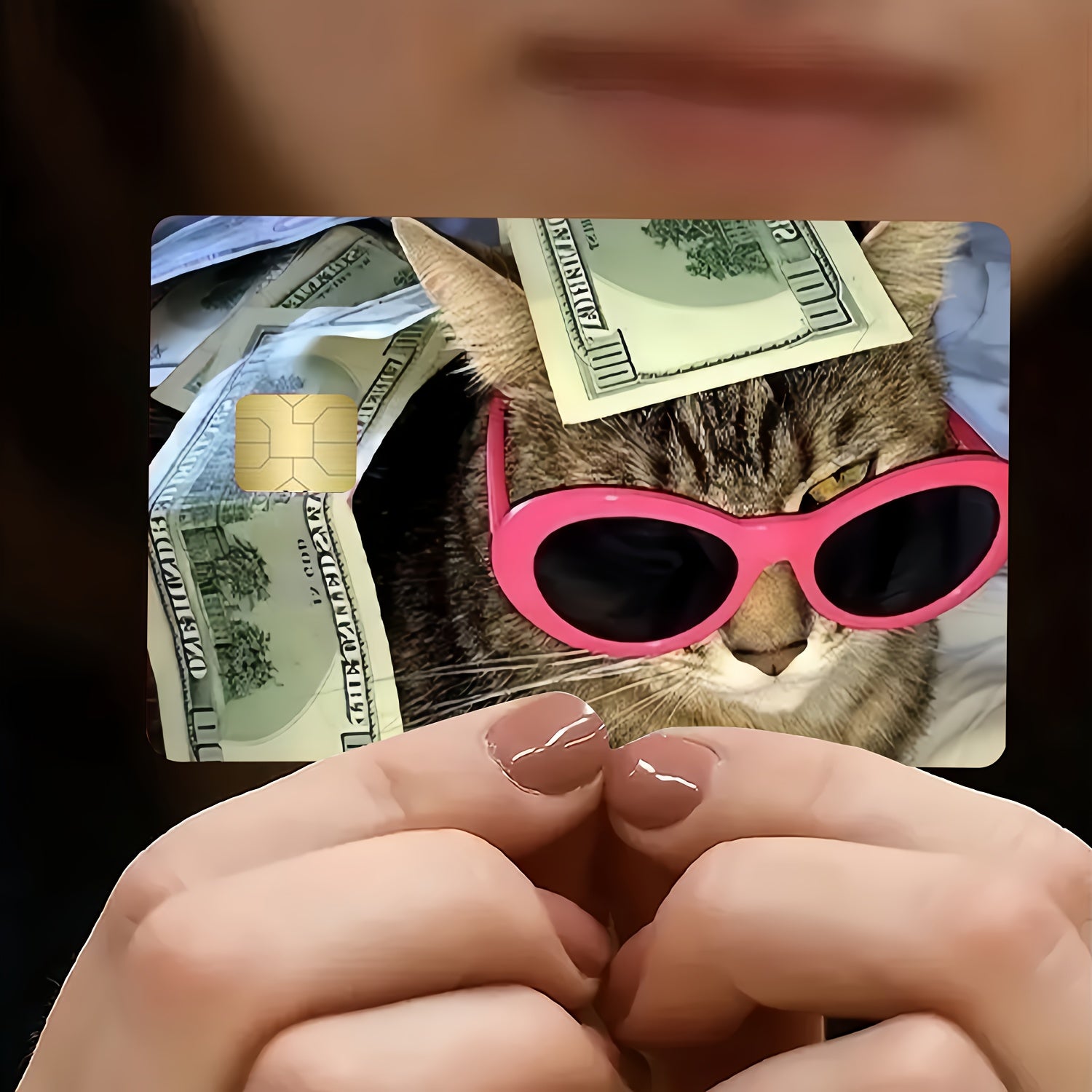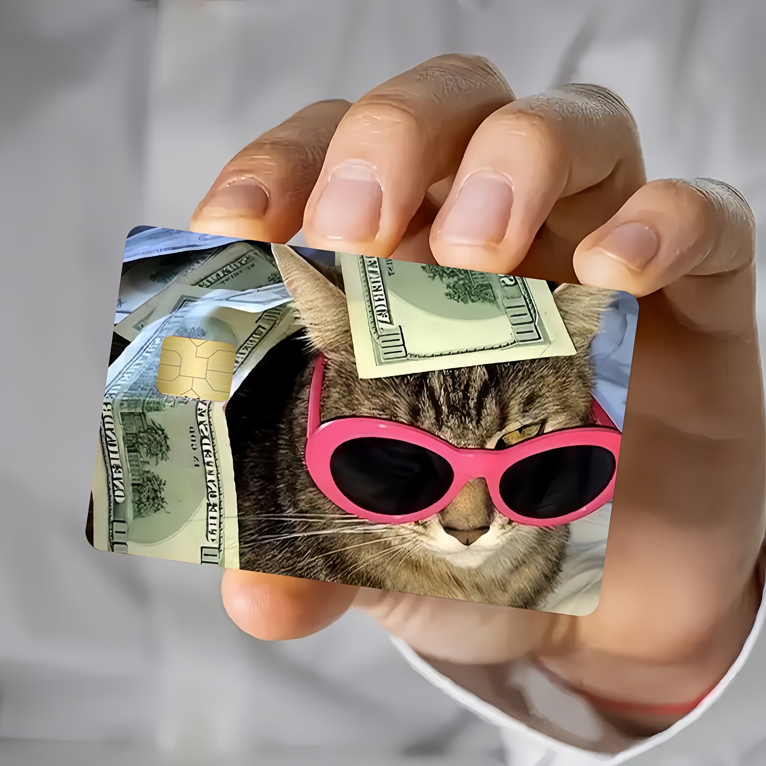 Котка + пари + розови очила = перфектният вайб! 🐱💸 Този стикер е за всички, които живеят със самочувствие и обичат да показват стил – дори върху картата си. Котаракът с банкноти по главата и розови очила е символ на чистия luxury mood.